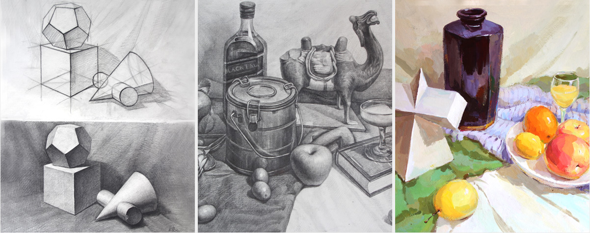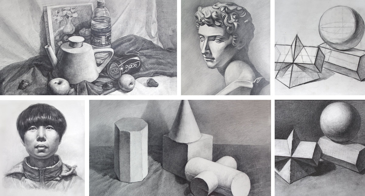 ·单个几何体及祝贺几何体结构与明暗素描构图写生训练